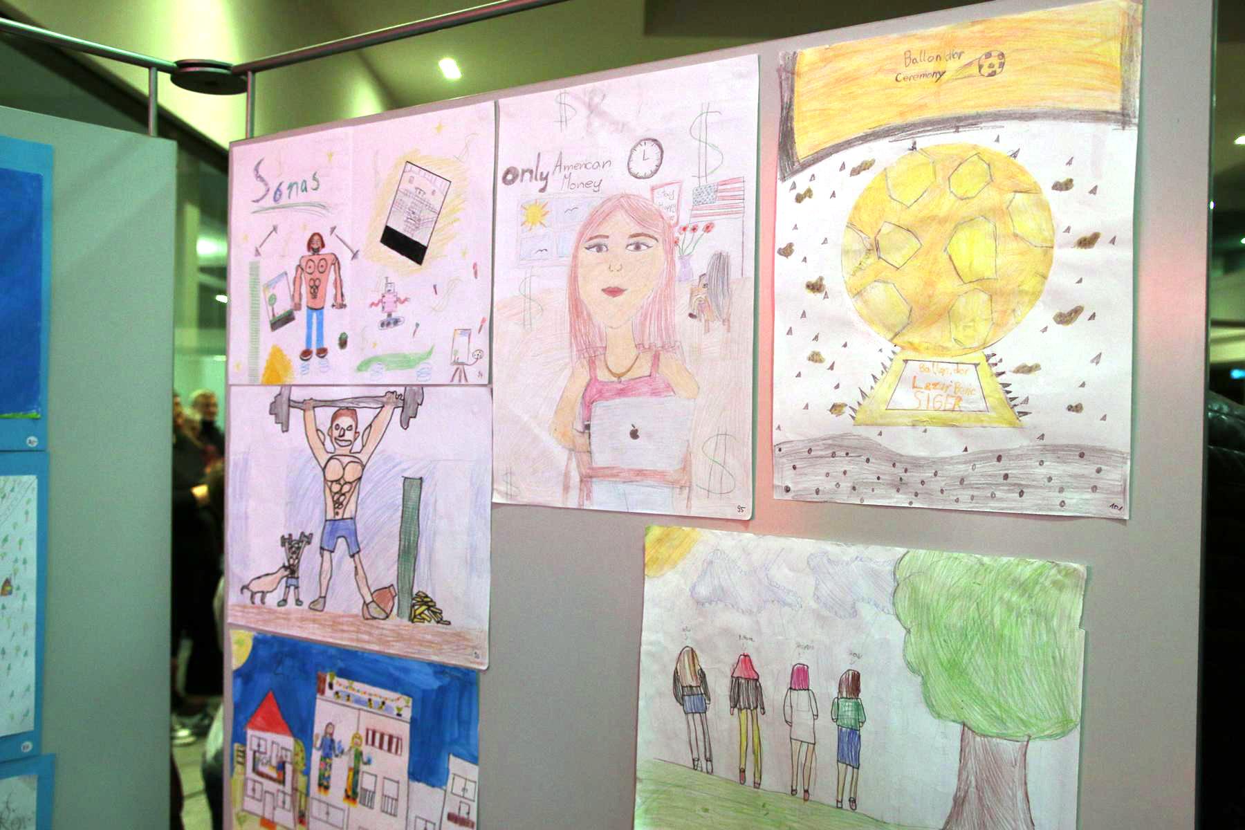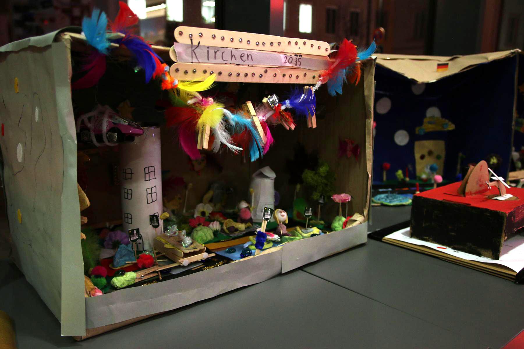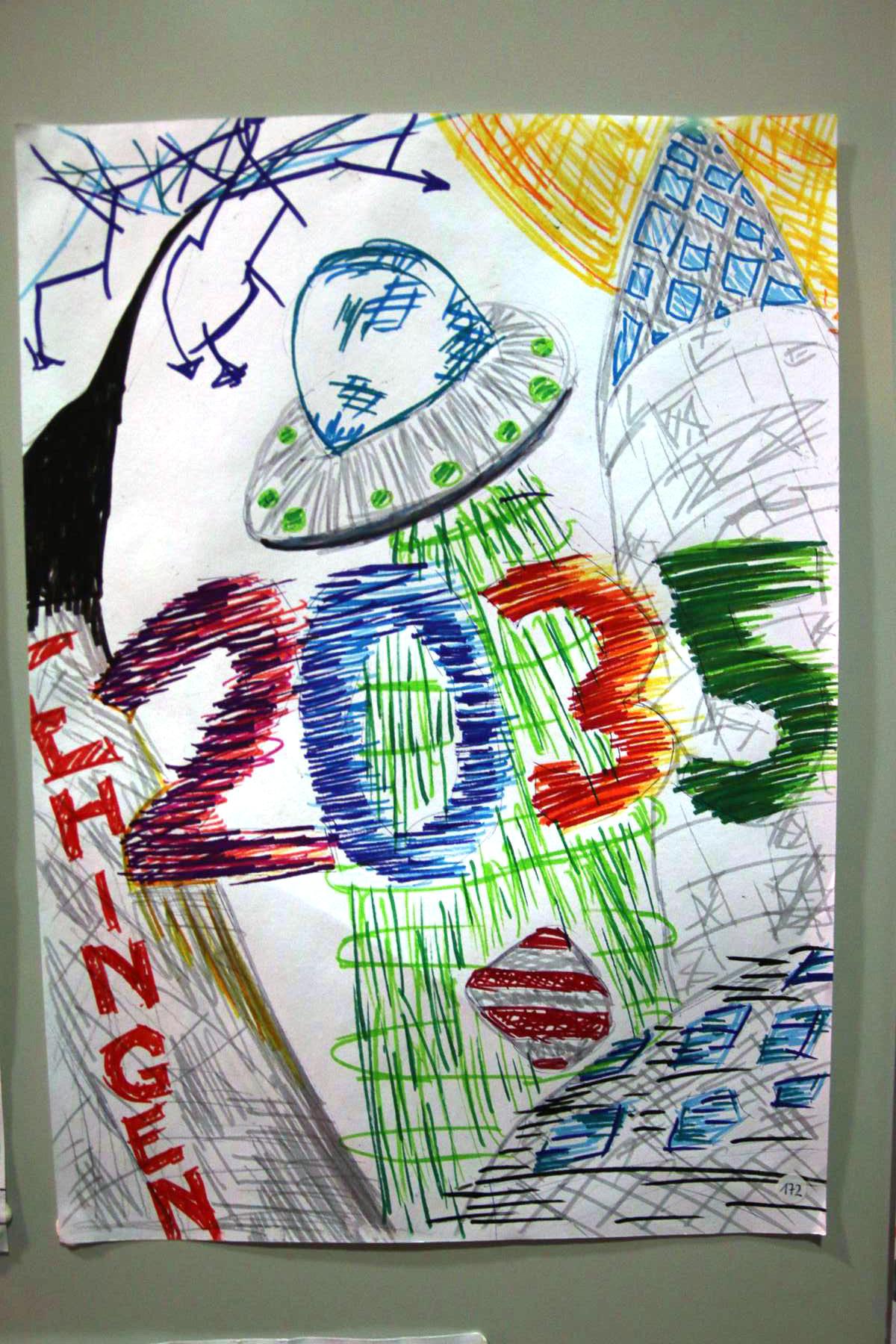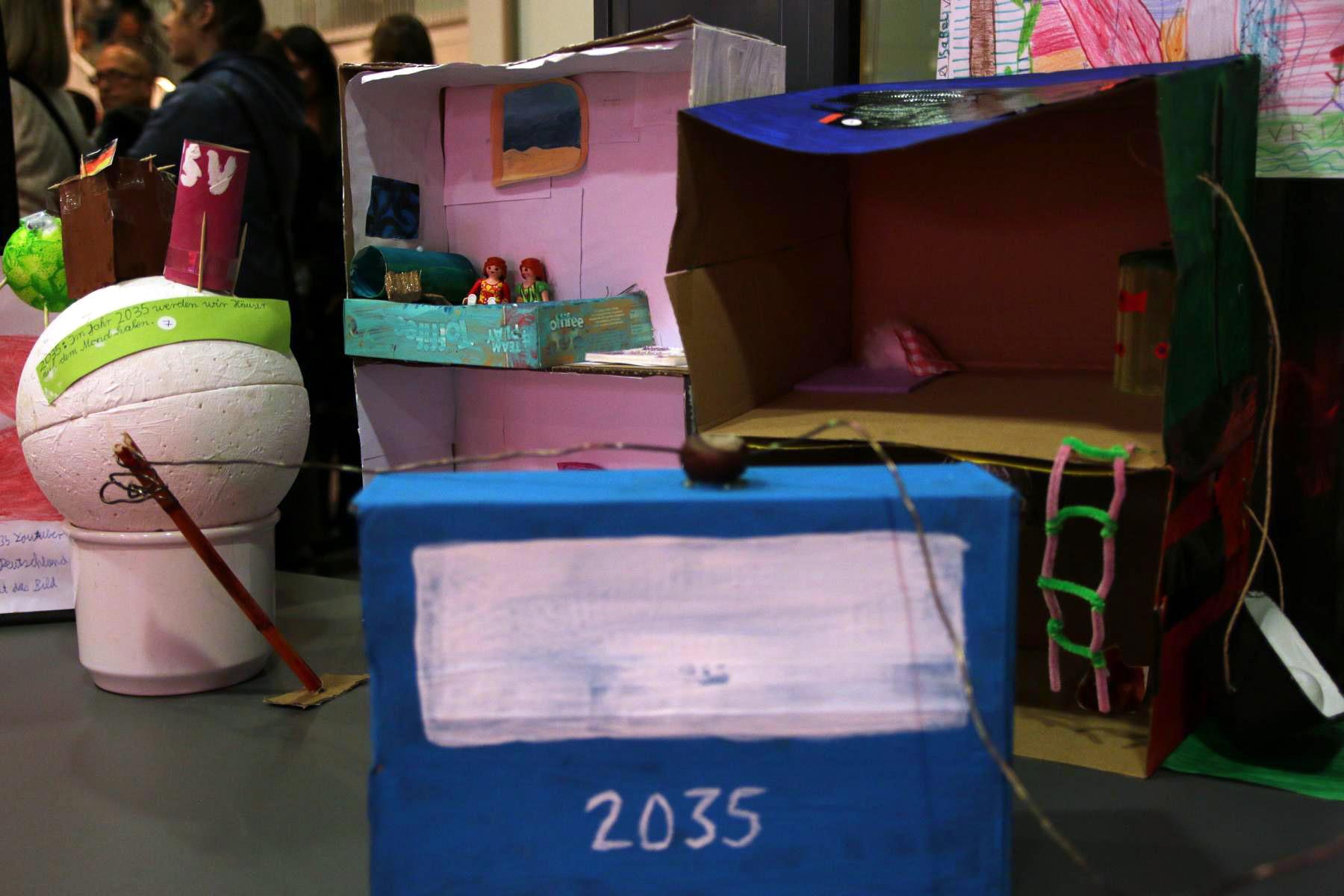 Neben Malereien und Zeichnungen haben die Künstler:innen teils riesige Kunstwerke wie etwa einen Heißluftballon gebastelt. Manche Werke sind in Eigenregie entstanden, andere als Gruppenarbeit oder gar als Klassen- oder Schulprojekt. Das „Imagine-Fenster 2035“ von sechs Schülerinnen der Schmiechtalschule hat die Jury besonders begeistert. Die 15- und 16-Jährigen Mädchen haben ein rustikales Holzfenster so umgestaltet, dass die geschlossenen Fensterläden Begriffe wie „Hass“, „Vorurteil“ und „Ausgrenzung“ zeigen. Sobald die Fensterläden geöffnet werden, kommen hingegen die Werte zum Vorschein, welche sich die Mädchen für die Zukunft wünschen: „Vielfalt“, „Zusammenhalt“, „Gemeinschaft“, „Liebe“ und „Mitgefühl“ sind nur einige davon. Für diese Idee zeichnete die Jury die Gruppe mit dem ersten Platz in der Gesamtwertung aus und überreichte ihnen ein Preisgeld in Höhe von 100 Euro sowie Kinogutscheine.