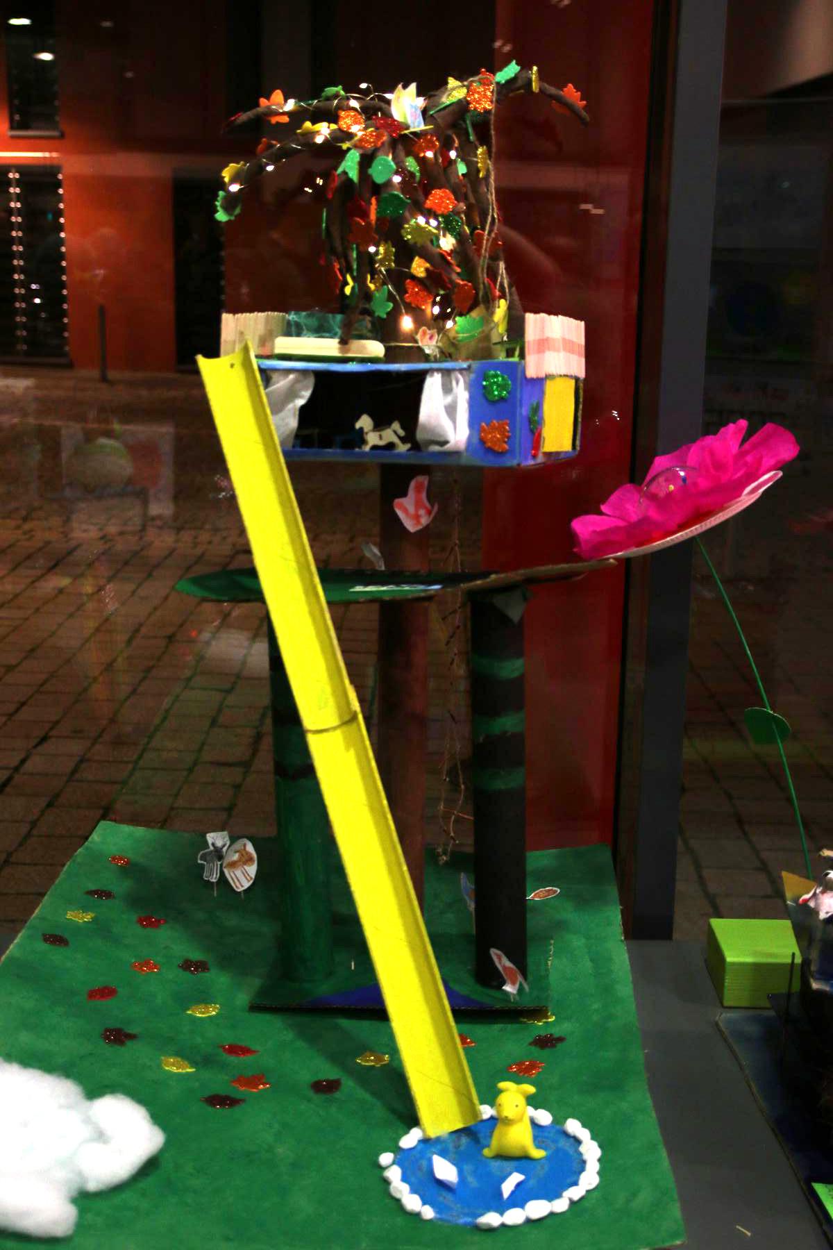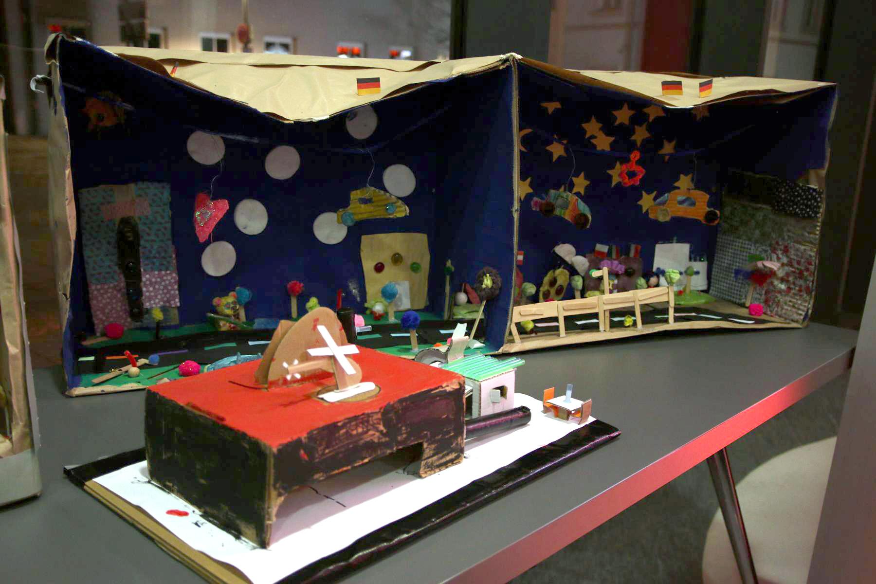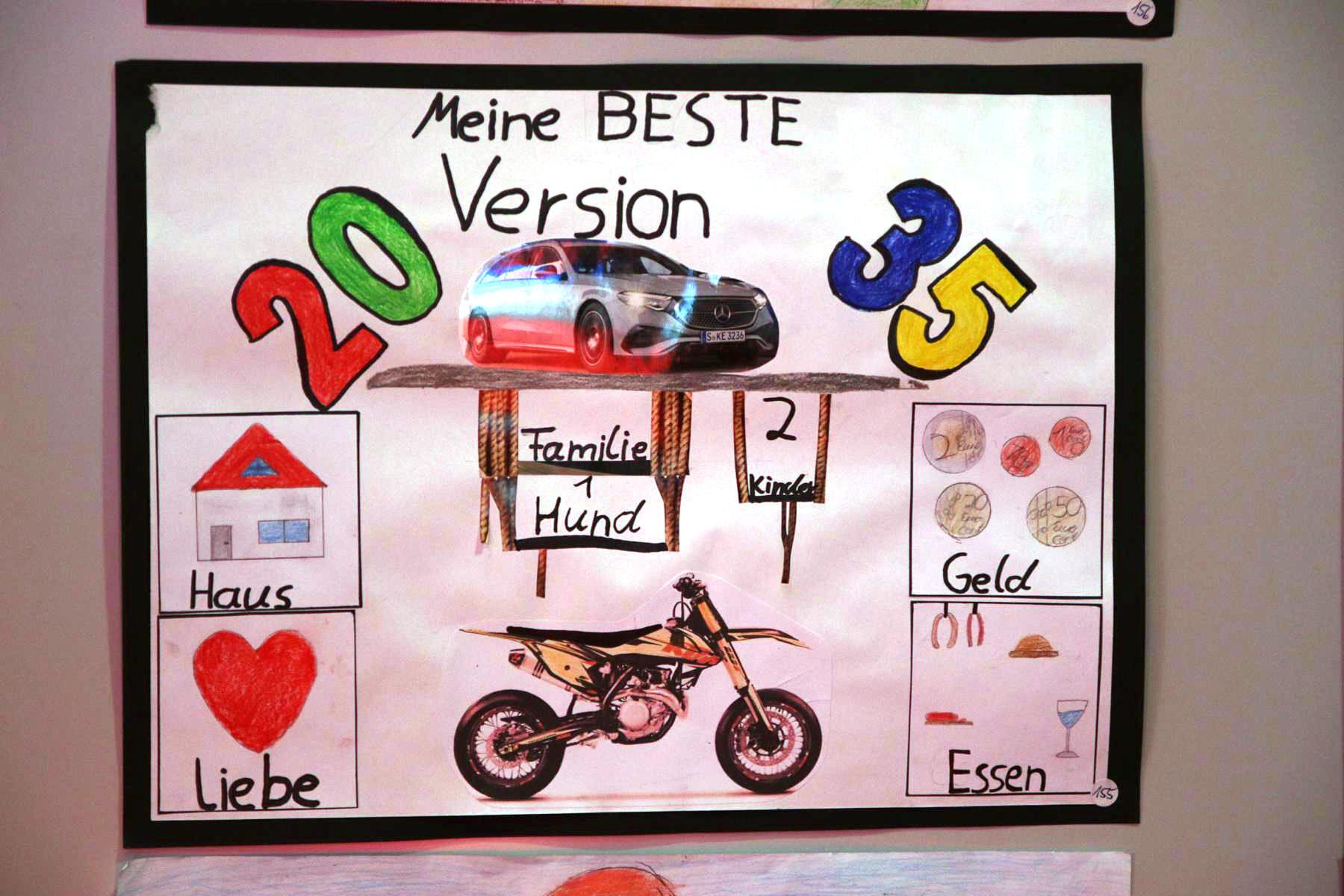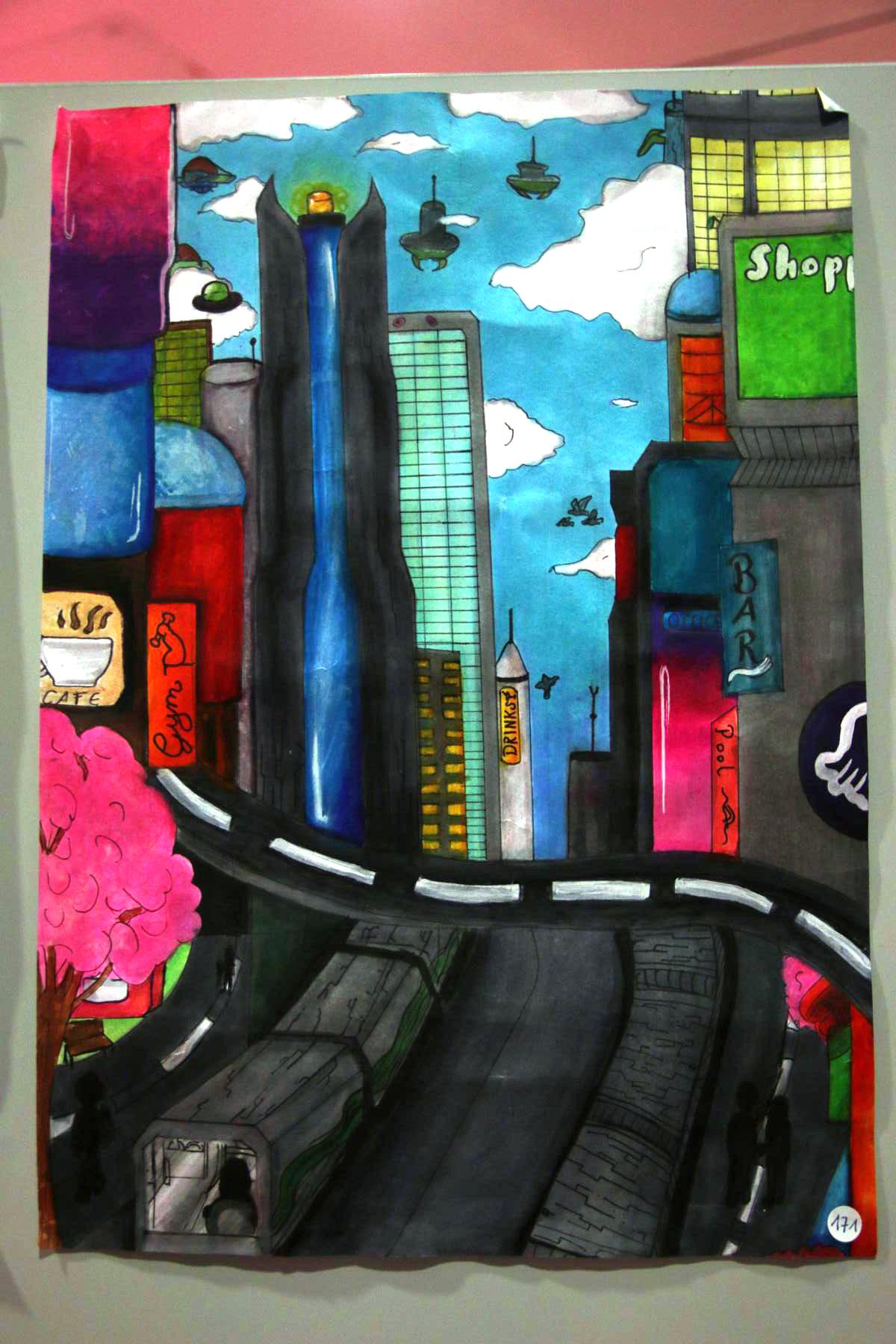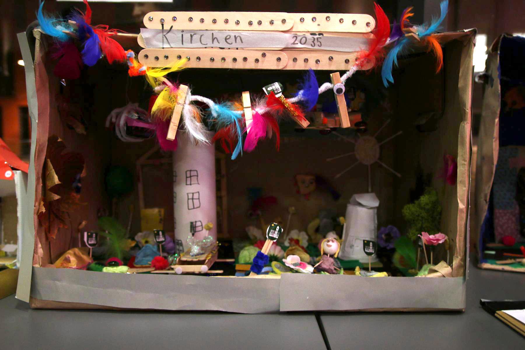 Neben Malereien und Zeichnungen haben die Künstler:innen teils riesige Kunstwerke wie etwa einen Heißluftballon gebastelt. Manche Werke sind in Eigenregie entstanden, andere als Gruppenarbeit oder gar als Klassen- oder Schulprojekt. Das „Imagine-Fenster 2035“ von sechs Schülerinnen der Schmiechtalschule hat die Jury besonders begeistert. Die 15- und 16-Jährigen Mädchen haben ein rustikales Holzfenster so umgestaltet, dass die geschlossenen Fensterläden Begriffe wie „Hass“, „Vorurteil“ und „Ausgrenzung“ zeigen. Sobald die Fensterläden geöffnet werden, kommen hingegen die Werte zum Vorschein, welche sich die Mädchen für die Zukunft wünschen: „Vielfalt“, „Zusammenhalt“, „Gemeinschaft“, „Liebe“ und „Mitgefühl“ sind nur einige davon. Für diese Idee zeichnete die Jury die Gruppe mit dem ersten Platz in der Gesamtwertung aus und überreichte ihnen ein Preisgeld in Höhe von 100 Euro sowie Kinogutscheine.